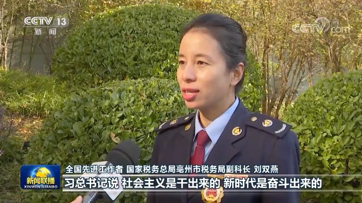 全国先进工作者 国家税务总局亳州市税务局副科长 刘双燕:习总书记说,社会主义是干出来的,新时代是奋斗出来的。作为一名税务局下派的扶贫干部,回村以后我也会继续带领我们的村民加大我们的产业扶贫力度,巩固我们的脱贫成果,让我们老百姓的日子越过越红火,让我们贫困群众脱贫后的生活都能芝麻开花节节高。