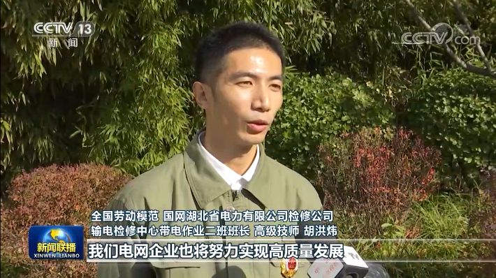 全国劳动模范 国网湖北省电力有限公司检修公司输电检修中心带电作业二班班长、高级技师 胡洪炜:2021年是“十四五”的开局之年,我们电网企业也将是努力实现高质量发展,包括现在从我们超高压也慢慢变成了特高压,我们也将继续研发一系列的超特高压带电作业工器具,守护好我们湖北主网,守护好万家灯火。