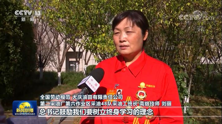 全国劳动模范 大庆油田有限责任公司第二采油厂第六作业区采油48队采油工班长 高级技师 刘丽:总书记鼓励我们要树立终身学习的理念,养成善于学习、勤于思考的习惯,这些都让我们觉得跟我们的工作都息息相关。我们大庆油田到今年已经是开发建设第61年,现在我们确实面对着很多新的难题,都需要我们不断学习、不断创新去攻克它。