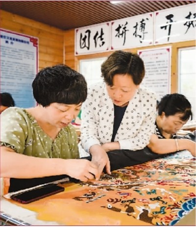 怎么帮?王惠芳想到了手工编织和手工刺绣。王惠芳有着20多年的刺绣经验,熟练地掌握了京绣、丝绫堆绣、手工编织、传统剪纸等民间手工艺制作技艺。为了带动家乡的姐妹们增收,2010年,王惠芳在娘家黄岭西村、婆家燕家台村及门城地区成立了三个巧娘工作室,对妇女进行手工制作培训,不仅免费教技术,还把原材料送到妇女们的炕头上。2013年,又成立了北京布韵传奇手工编织合作社。