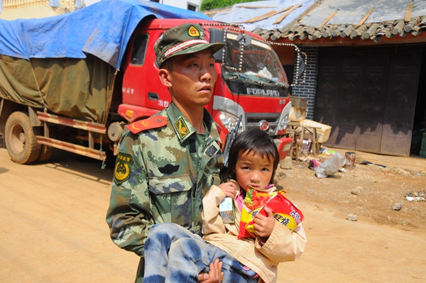 作为一名人民子弟兵,他不顾余震危险,冲进灾区帮救援官兵一起参加救援任务,把身上所带的救援干粮全部拿给灾区群众,记者在现场记录了一张彭发忠抱起灾区小女孩的照片,也同时记录下了那温馨感人的一面。
