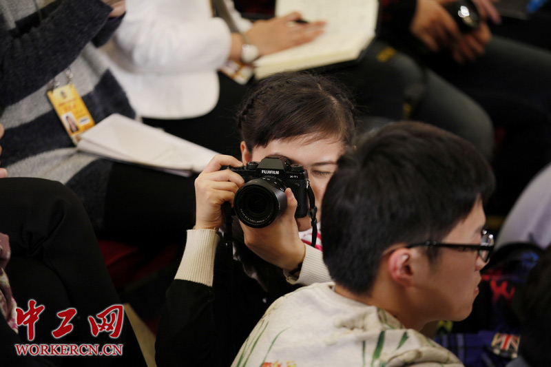 全国政协十二届三次会议新闻发布会召开,今年有超过3100名中外记者采访报道全国“两会”。对记者来说每年一次的全国“两会”是一场“新闻战”。 (中工网记者 韩靖摄)