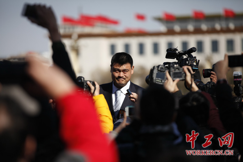 全国政协十二届三次会议3日15时在北京人民大会堂开幕,全国政协委员姚明步入会场。 (中工网记者 韩靖摄)