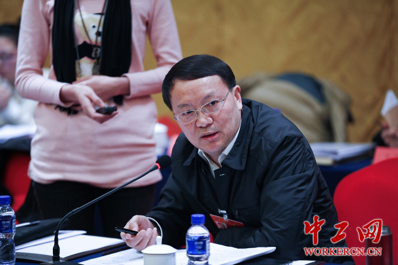 3月5日,全国政协十二届三次会议举行小组讨论,在工会界别的小组讨论会上,政协委员对于在国企改革过程中如何维护职工权益的问题展开热烈讨论。图为全国政协委员罗茂乡发言,他说,“国企改革方案应通过职代会讨论,让职工参与到企业改革的方案中,充分考虑改革中涉及职工的利益。”