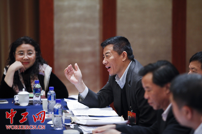 3月5日,全国政协十二届三次会议举行小组讨论,在工会界别的小组讨论会上,政协委员对于在国企改革过程中如何维护职工权益的问题展开热烈讨论。图为全国政协委员周中枢发言,他说,“中国在走向世界经济强国的过程中要有至少三十家大型跨国企业。”