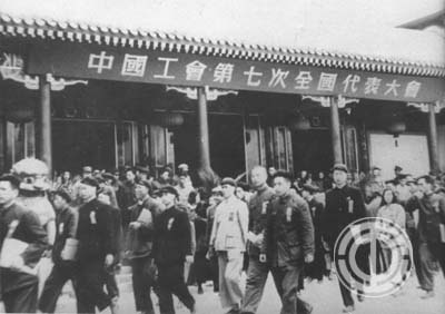 1953年5月2日~11日在北京召开。到会代表830人,代表全国1020万会员。大会由刘宁一致开幕词,刘少奇代表中共中央向大会致词,赖若愚作工作报告,刘长胜致闭幕词。大会通过了《关于中国工会工作的报告》、《关于修改中国工会章程的报告》等决议。大会选举出全总七届执委99人,候补执委42人。赖若愚当选为全总主席,刘宁一、刘长胜、朱学范当选为副主席。还选举了主席团委员24人、推选了书记处书记8人。刘少奇继续担任全总名誉主席。国际工会组织和各友好国家工会组织的代表与会。(资料来源:《中国工运》)