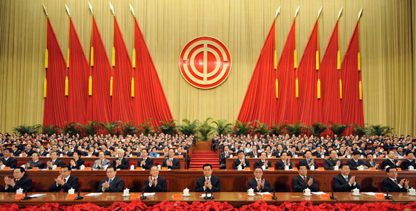 胡锦涛、吴邦国、温家宝、贾庆林、李长春、习近平、李克强、贺国强、周永康等党和国家领导人到会祝贺。中共中央政治局常委、中央书记处书记、国家副主席习近平代表党中央发表了题为《在夺取全面建设小康社会新胜利中充分发挥工人阶级主力军作用》的祝词。