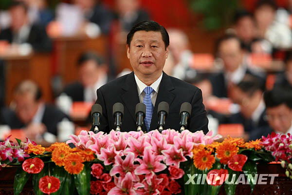2008年10月17日,中国工会第十五次全国代表大会在北京人民大会堂开幕。这是中共中央政治局常委、国家副主席习近平发表讲话。新华社记者 庞兴雷 摄