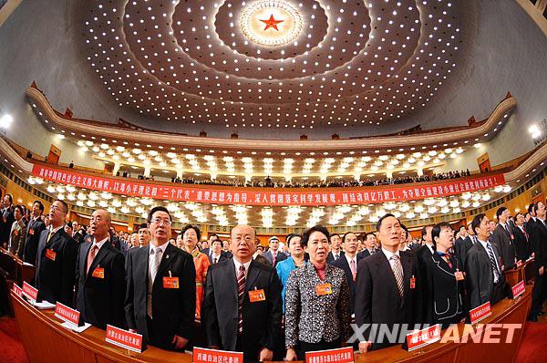 2008年10月17日,中国工会第十五次全国代表大会在北京人民大会堂隆重开幕。胡锦涛、吴邦国、温家宝、贾庆林、李长春、习近平、李克强、贺国强、周永康等在主席台就座,祝贺大会召开。新华社记者 刘建生 摄