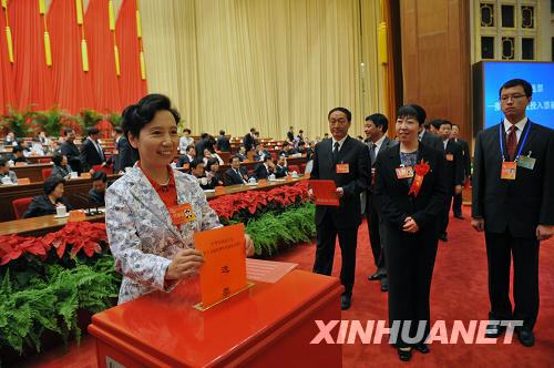 2008年10月19日,王兆国在投选票。当日,中国工会第十五次全国代表大会举行全体会议,选举产生中华全国总工会第十五届执行委员会和经费审查委员会。中共中央政治局委员、全国人大常委会副委员长、大会主席团常务主席王兆国出席会议。新华社记者 何俊昌摄