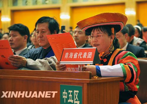 2008年10月19日,一位来自青海省的少数民族代表在认真阅读选票。当日,中国工会第十五次全国代表大会举行全体会议,选举产生中华全国总工会第十五届执行委员会和经费审查委员会。新华社记者 何俊昌摄