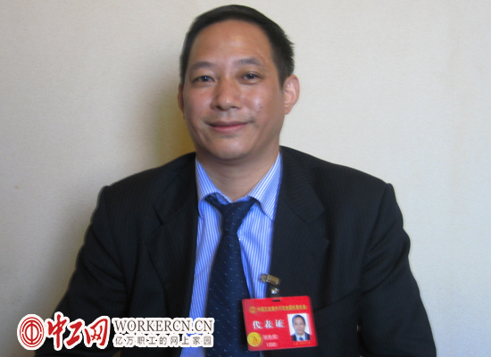 农民工代表、重庆力帆集团质量中心成品检验部组长邹先荣 中工网记者 徐恬恬摄