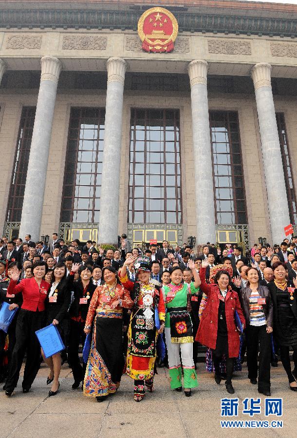 10月18日,中国工会第十六次全国代表大会在北京人民大会堂开幕。这是大会结束后,部分与会代表在人民大会堂前合影。 新华社记者何俊昌摄