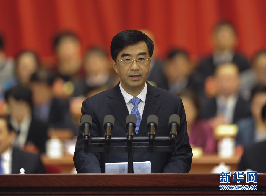 10月18日,中国工会第十六次全国代表大会在北京人民大会堂开幕。这是共青团中央书记处第一书记秦宜智向大会致贺词。 新华社记者谢环驰摄