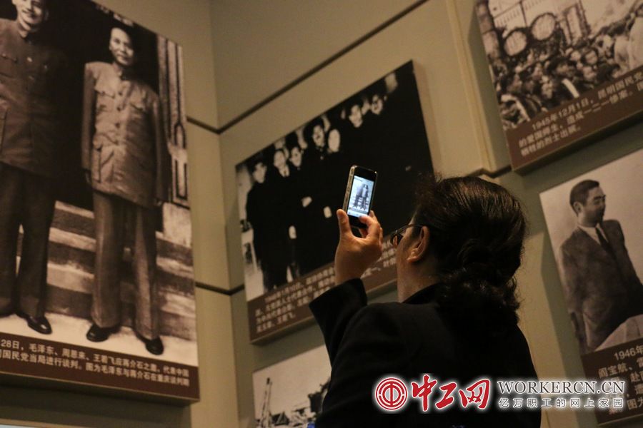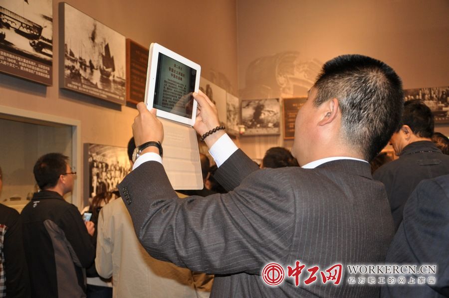 图为一位参观展览的代表正在用手机拍摄资料留念。中工网记者 郑一强 摄
