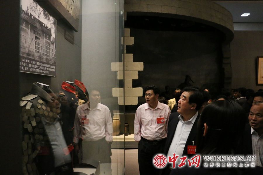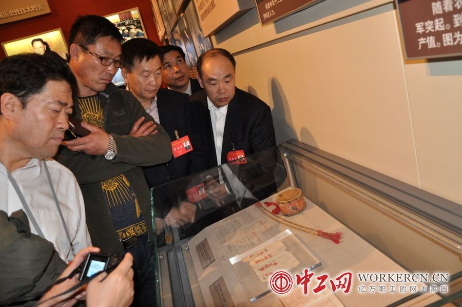 图为参观展览的代表在讲解员的带领下仔细的观看展览。中工网记者 郑一强 摄