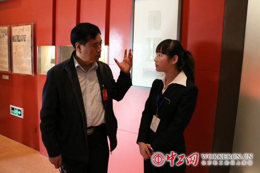 图为一位参观展览的代表正在向讲解员提问。中工网记者 郑一强 摄