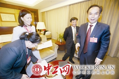 10月21日,听完李克强总理所作的经济形势报告,海南省代表团4位代表在驻地交流心得。他们认为,中国工会十六大所确定的目标任务,为海南工会工作的发展提供了新的机遇、新的动力。 中工网记者 杨登峰 摄