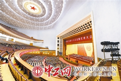 10月22日上午,中国工会第十六次全国代表大会圆满完成各项议程胜利闭幕。图为中国工会十六大闭幕式会场。中工网记者 于文国 摄