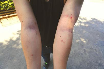 卷起衣袖,他的手臂上几十个蚕虫大小的烫疤,有的地方伤痕成片。这些疤痕,都是焊花飞溅、烫穿衣袖留下的,有些地方反复被烫伤。