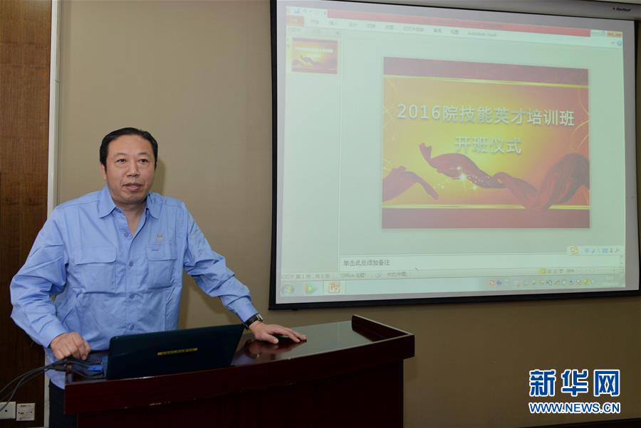 在位于河南洛阳的中航工业空空导弹研究院,鲁宏勋为导弹院技能工人作专项培训(2016年4月19日摄)。新华社发