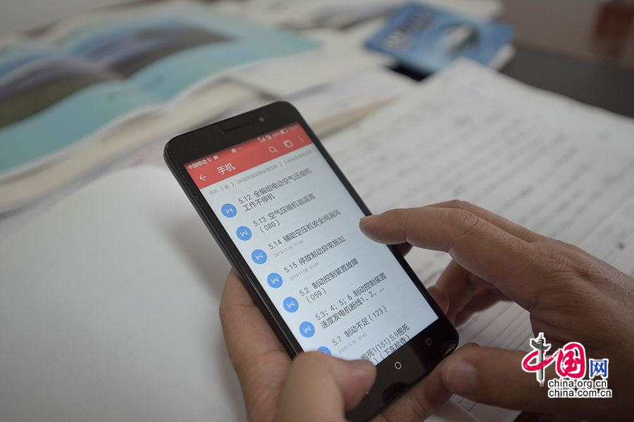 动车应急指挥系统快速查询的内容以可编辑文档的形式被刘波存在了手机里,以便随时添加和更新经验。 中国网记者 张若梦 摄