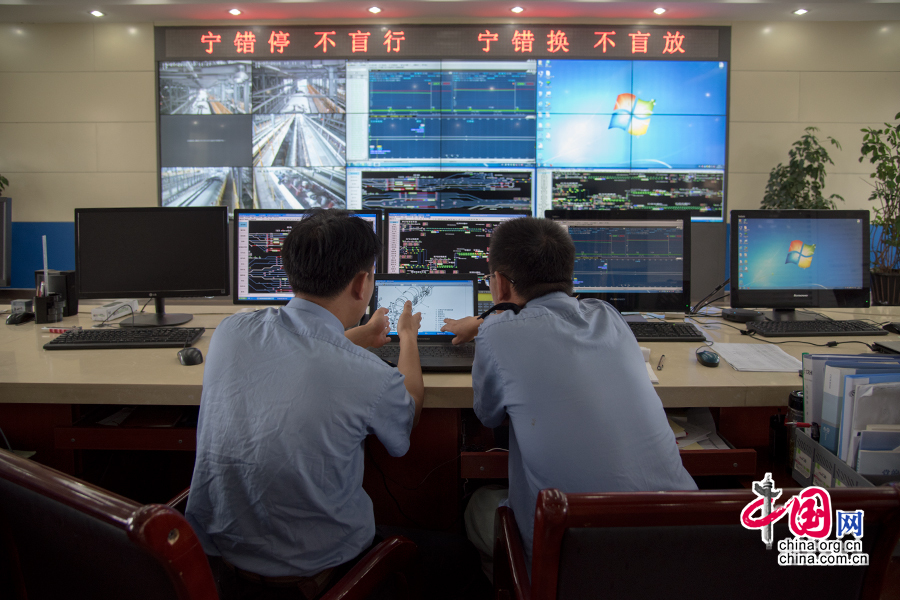 调度室内,刘波远程指导随车机械师处理故障。 中国网记者 张若梦 摄