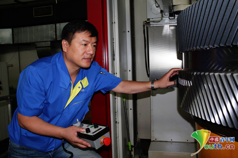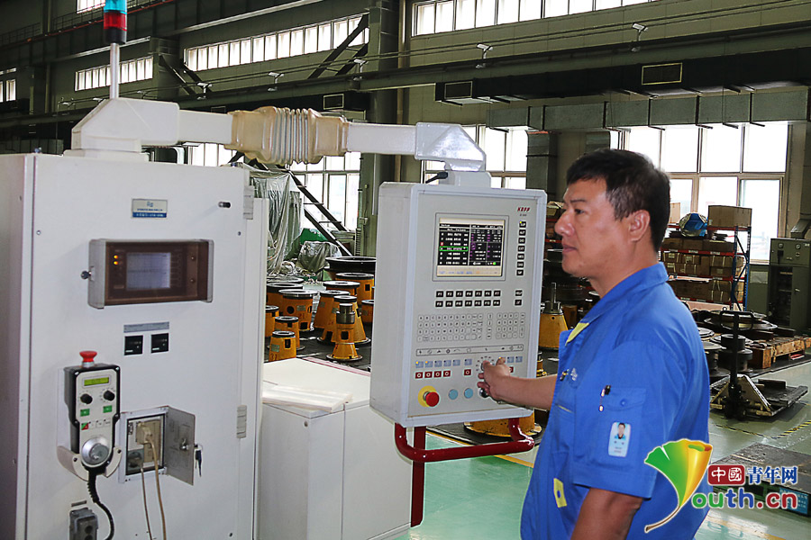 徐强在操作机器设备。中国青年网记者张群 摄