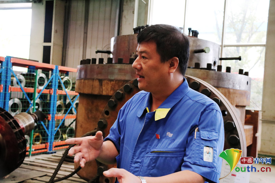 徐强介绍车间生产情况。 中国青年网记者张群 摄