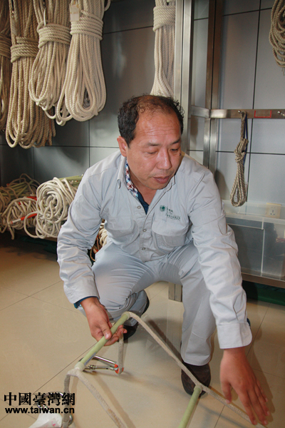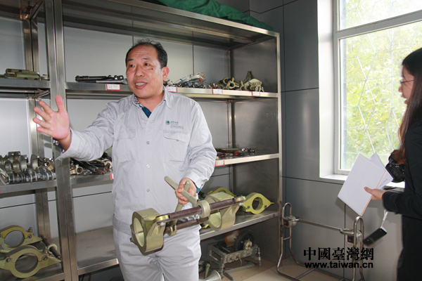 赵文武手拿工作工具,向记者讲述工作过程。(中国台湾网 李帅 摄)