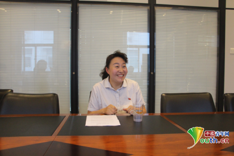 年轻的同事评价郭凤华心态好,开朗欢乐,图为郭凤华与记者进行交流。中国青年网记者 刘利影摄