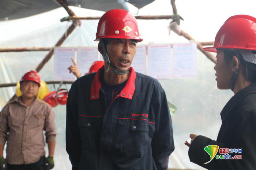 郭广波在向记者介绍钻探工作进行情况。中国青年网记者 刘利影摄