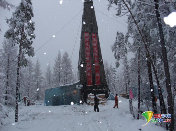2010年深秋,他们在黑龙江省漠河北极村为吉林大学的一个科研项目做地热井勘探,项目地层条件复杂,郭广波和队员们就在零下三四十度的野外作业,大家裹着棉衣棉帽子御寒,手机放在口袋里十分钟就冻关机了,施工环境十分恶劣。
