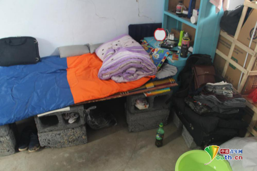 钻探队员在民房内搭建的简易床铺。中国青年网记者 刘利影摄