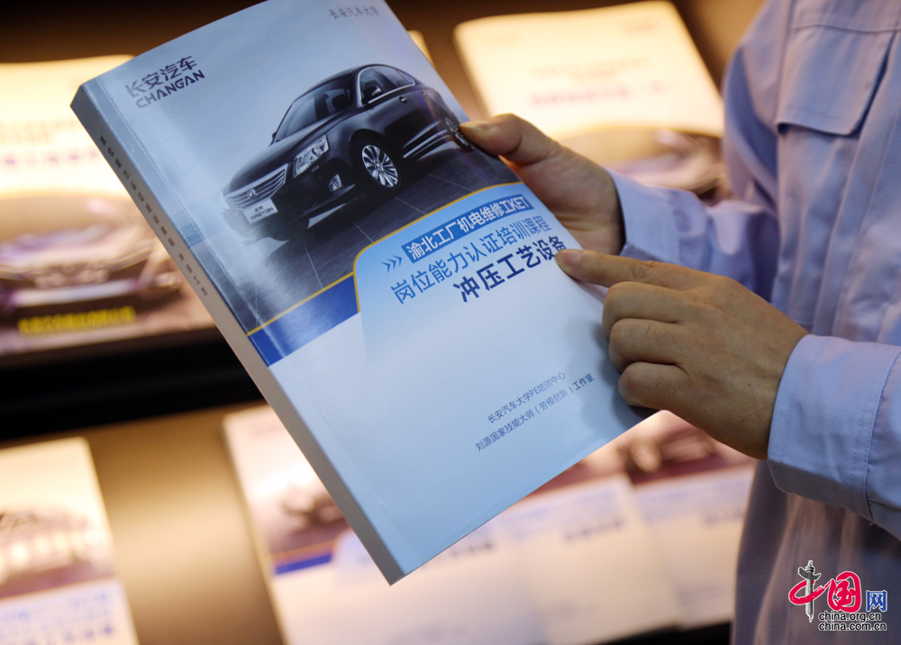 刘源发起了将厂里先进维修案例、技术、经验“留下来”的工作。先后编制了《长安汽车大学设备保全系列课程——高级工培训手册》(上中下册),里面收集了长安集团建厂以来的很多维修案例,是一个关于设备维修的百科全书。(中国网 杨楠 摄影报道)