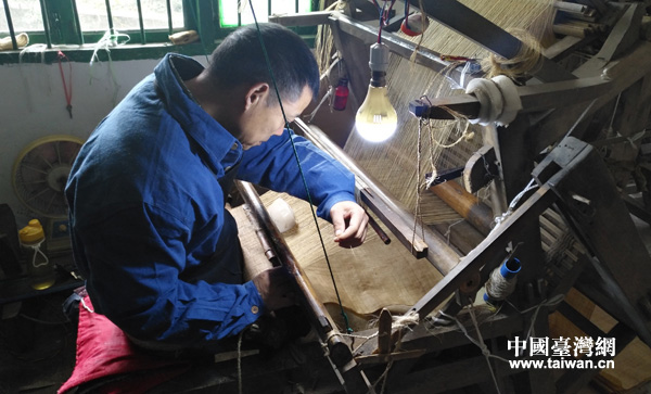 李俭康在织布,这是成品的最后一步。(中国台湾网 王文英摄)
