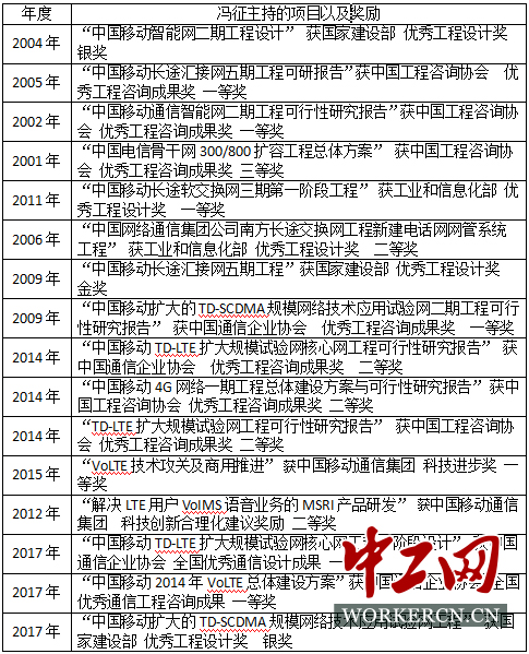 冯征主持的项目以及获得的奖励。中工网记者 朱晶晶整理