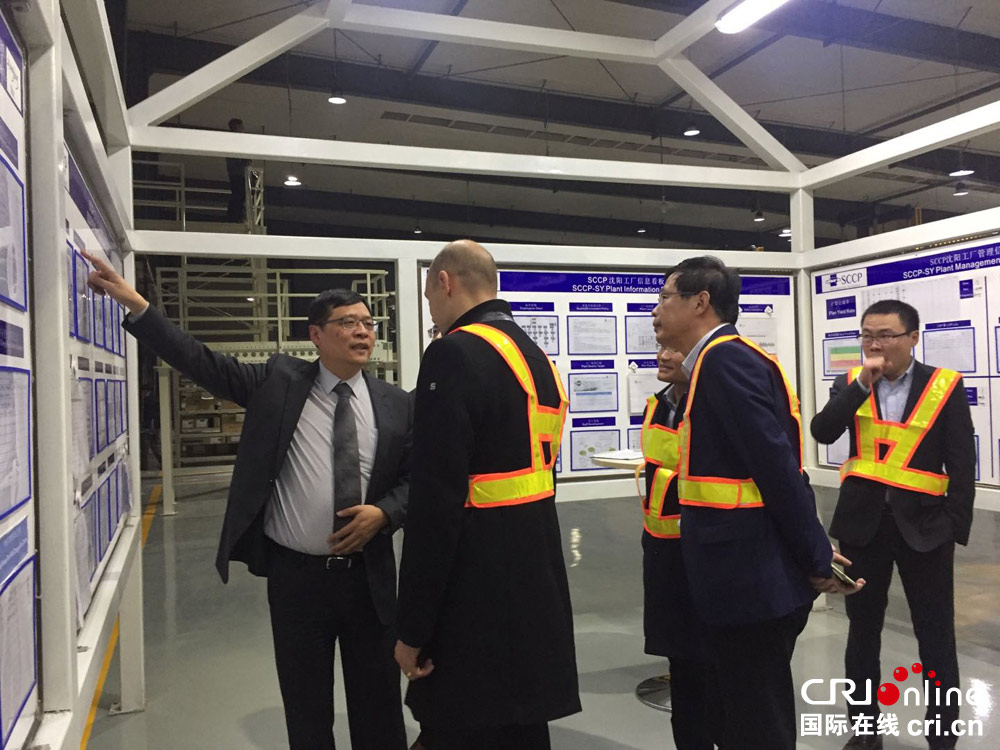 龚杜弟向客户介绍工厂管理体系。(上海汽车地毯总厂有限公司供图)