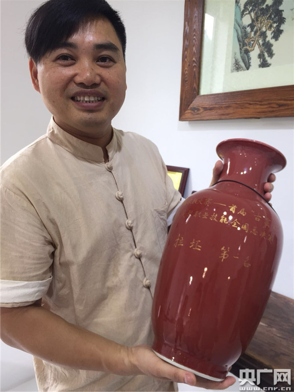 这场比赛让时年37岁的占绍林一战成名,成为陶瓷界最年轻的拉坯大师,此后占绍林接连参加多场比赛,斩获多项大奖。