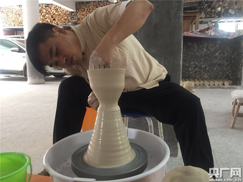 看上去似乎“轻而易举”的拉坯过程,浓缩的是占绍林20年如一日的坚持和钻研。“拉坯是一件很枯燥的事情,但通过你的坚持和创新,一件件新鲜玩意儿在你手中诞生,又是一件特别有乐趣的事情。”占绍林告诉记者,时至今日,拉坯对于他来说,始终源于兴趣,而决非机械性重复的工作。