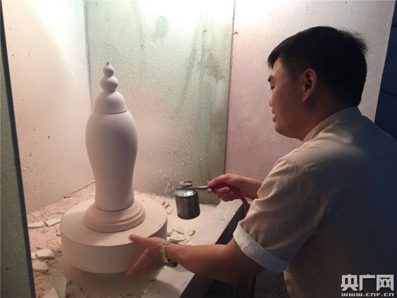 有一次,占绍林接了一位艺术家的一项工程,坯体完成后,因为跟要求相差两毫米,不得不重做。但正因为此,占绍林从此对坯体厚薄可练就精确到毫厘的本事;因为文化课欠缺,他专程结交拜访艺术院校老师,在与其合作中完善自己对制瓷工艺的理论修养。“我不仅要做一名工匠,我的更高追求是做一名艺术家,要有自己的作品流传后世。”