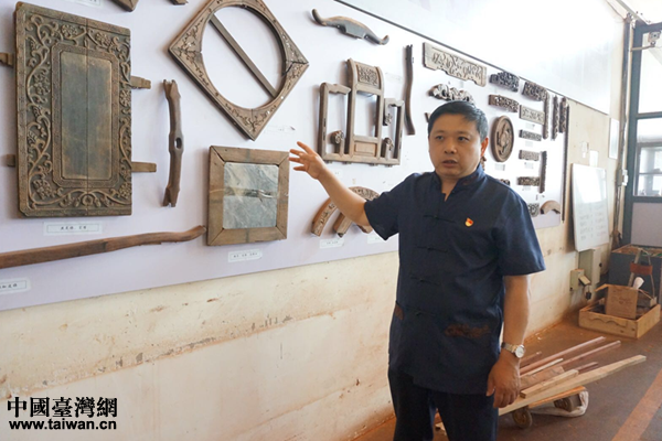 刘更生介绍“一木连做”的传统工艺。(中国台湾网 雍紫薇 摄)