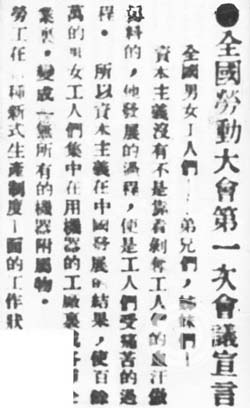 刊登在报刊上的中国劳动组合书记部成立宣言
