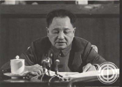 中国工会第九次全国代表大会开幕式上,邓小平代表中央向大会致词。