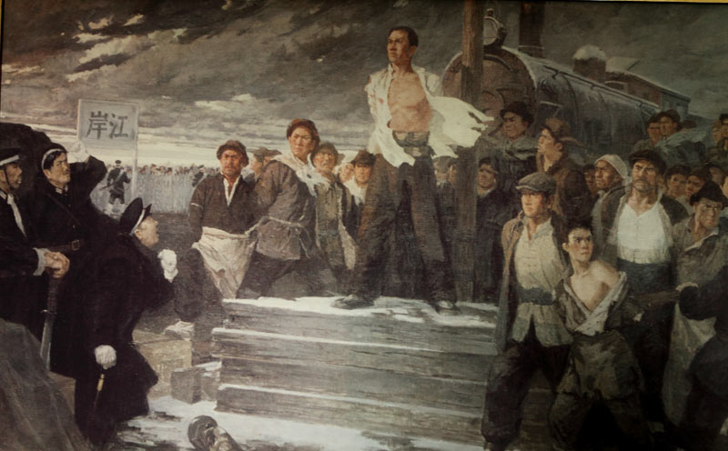 在“二七”惨案中,反动军警把京汉铁路总工会江岸分会委员长、共产党员林祥谦绑在江岸车站电线杆上,逼他下令复工。刽子手砍一刀逼一句,林祥谦宁死不屈,慷慨就义,时年仅31岁。