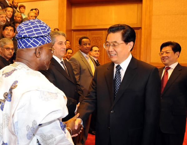 1月7日,中共中央总书记、国家主席胡锦涛在北京人民大会堂出席“2008’经济全球化与工会”国际论坛开幕式并致辞。这是开幕式前,胡锦涛亲切会见出席论坛的国际和地区工会组织领导人。新华社记者 李学仁 摄