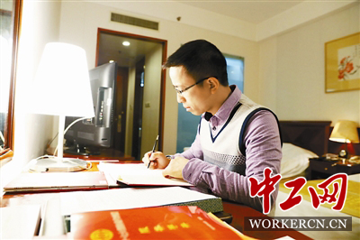 10月21日晚11:50,福建长乐力恒锦纶科技公司工会副主席陈魁代表仍在伏案修改文章。这次,他带来了关于进一步解决好乡镇工会“缺人”问题的提案。 薛晓秋 摄