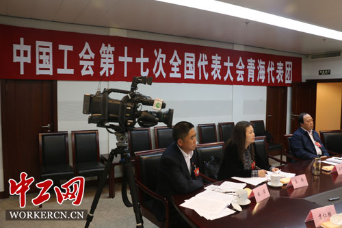 中工网讯(记者姚星)10月22日,中国工会第十七次全国代表大会开幕式在人民大会堂举行。图为青海、浙江代表团审议讨论中国工会十七大报告。