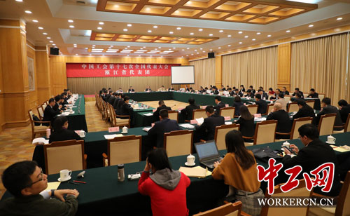 浙江代表团下午正在审议讨论中国工会十七大报告 邹伟锋 摄