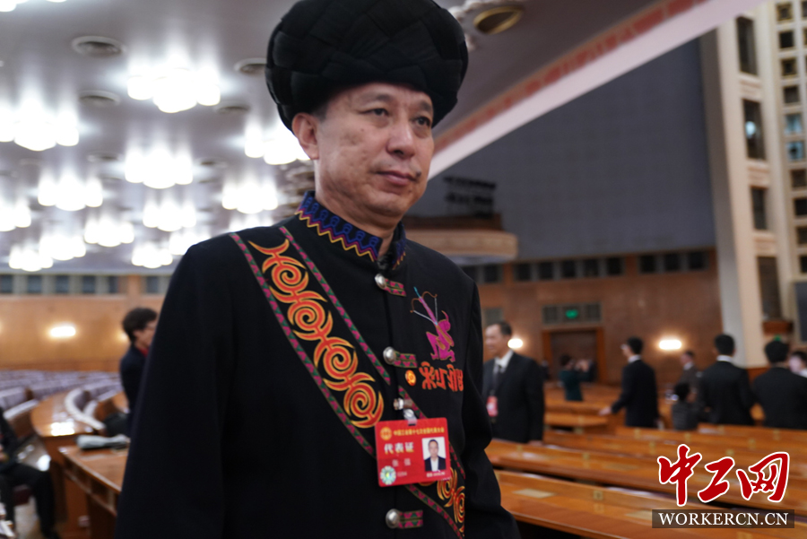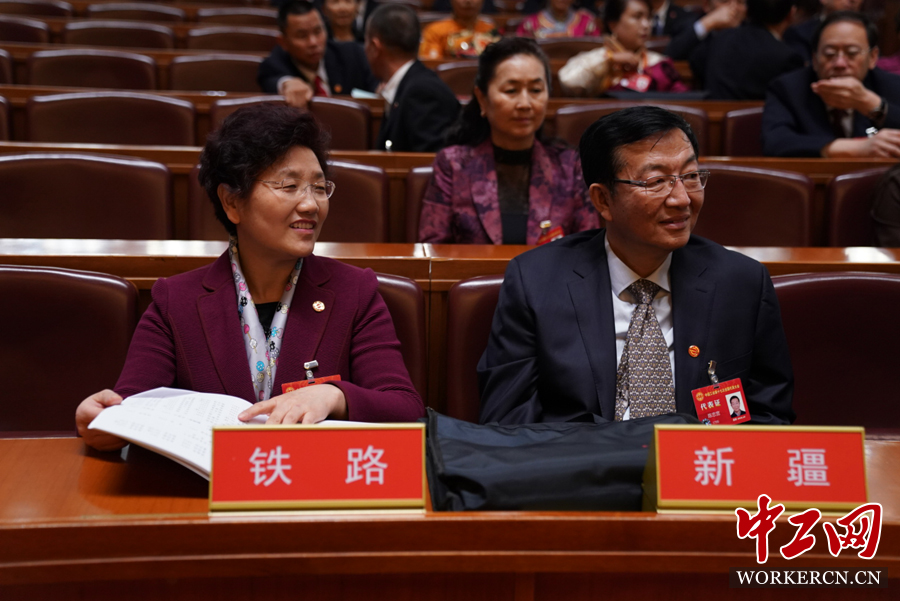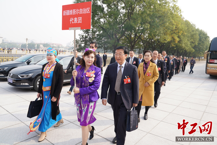 中国工会第十七次全国代表大会预备会议10月21日下午在人民大会堂举行。图为新疆维吾尔自治区代表团步入会场。中工网记者 王鑫摄